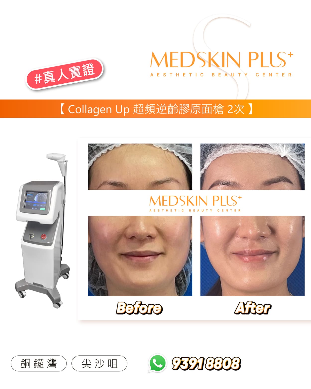 - Collagen Up 超频逆龄胶原枪以超频拉提技术结合单极射频能量直达胶原层底部,平均地大量激活胶原蛋白及弹力蛋白增生,令轮廓紧致提升。